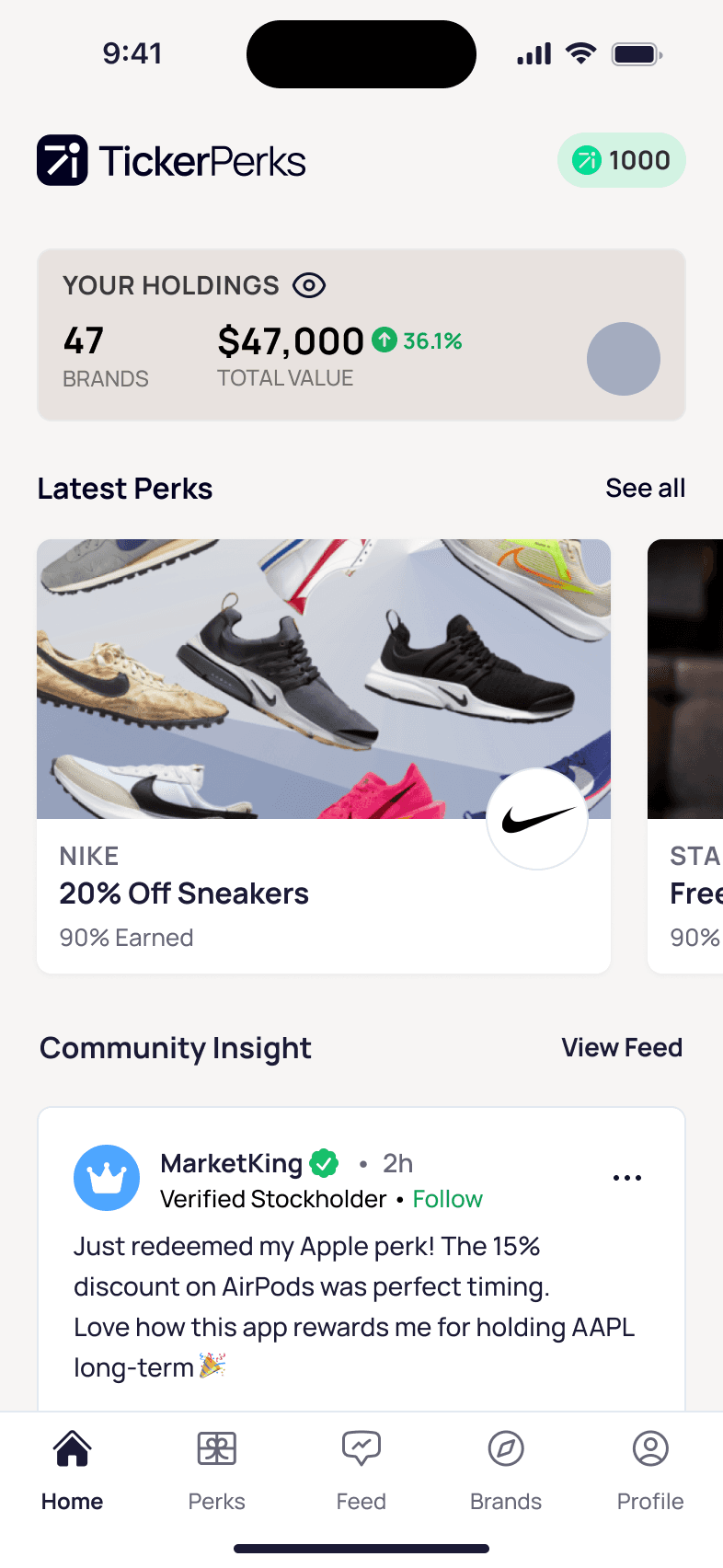 The all new TickerPerks is launching in Q1 2026. Join the waitlist for early access and exclusive perks from the brands you own.